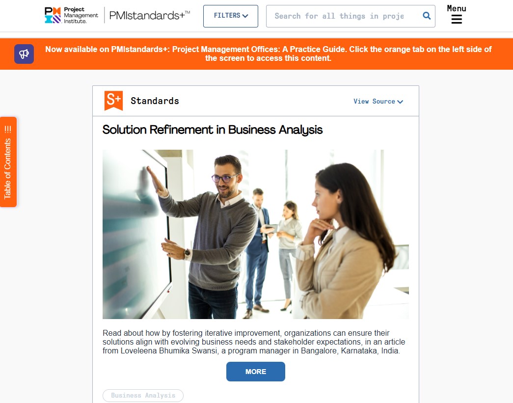 Ce que tu y trouves : accès au PMBOK® Guide et à une sélection de standards/guides (ex. Agile Practice Guide, Practice Standard for WBS, Standard for Risk Management…), plus une bibliothèque de contenus : 145+ articles, 80+ études de cas, 35+ templates téléchargeables, ainsi que des graphiques interactifs / vidéos / audio.